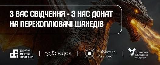 Залишіть свої спогади й історії про війну на Svidok.org, а ми конвертуємо їх у донат 50 гривень на дрони-перехоплювачі шахедів.
