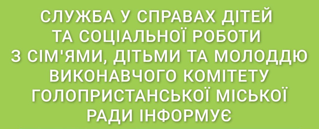 Служба у справах дітей та соціальної роботи з сім’ями, дітьми та молоддю інформує