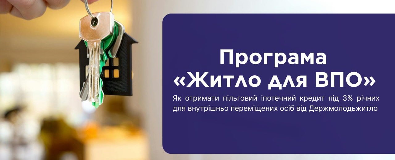 ВПО можуть отримати іпотечний кредит на придбання власного житла за ставкою 3% річних строком до 30 років за програмою «Житло для ВПО» від Держмолодьжитло.