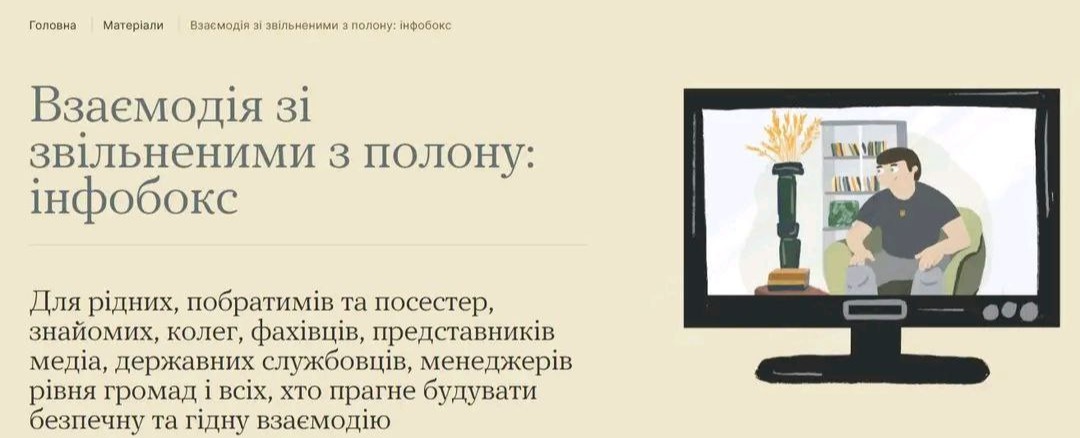 У межах Всеукраїнської програми ментального здоров’я «Ти як?», ініційованої Першою леді України Оленою Зеленською, створено комплексний інформаційний інфобокс щодо взаємодії з людьми, які пережили полон, тортури, ізоляцію та інші травматичні події.