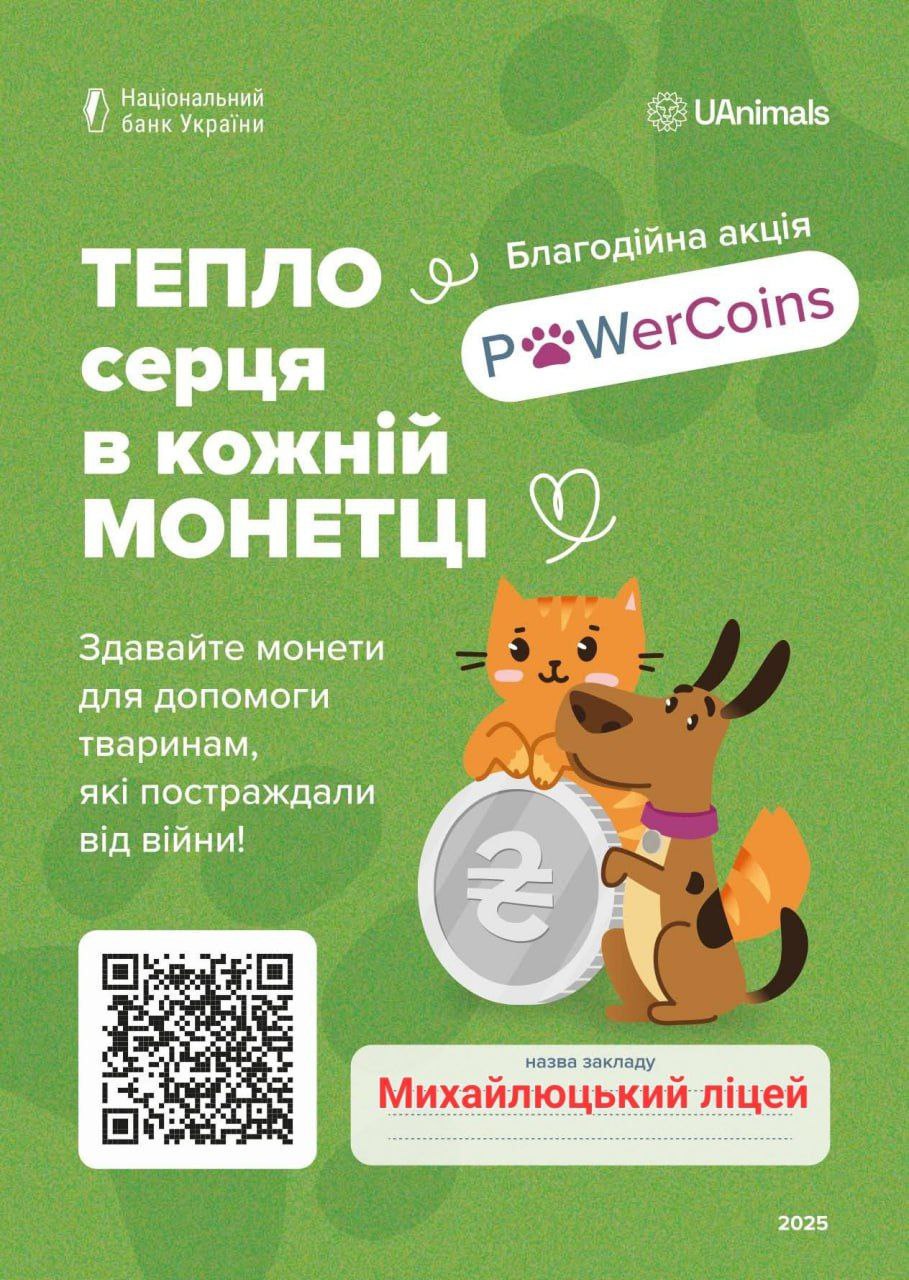 Національний банк України та UAnimals (організація, що рятує тварин та довкілля від війни та людської жорстокості) запрошують українців долучитися до благодійної акції #PowerCoins.