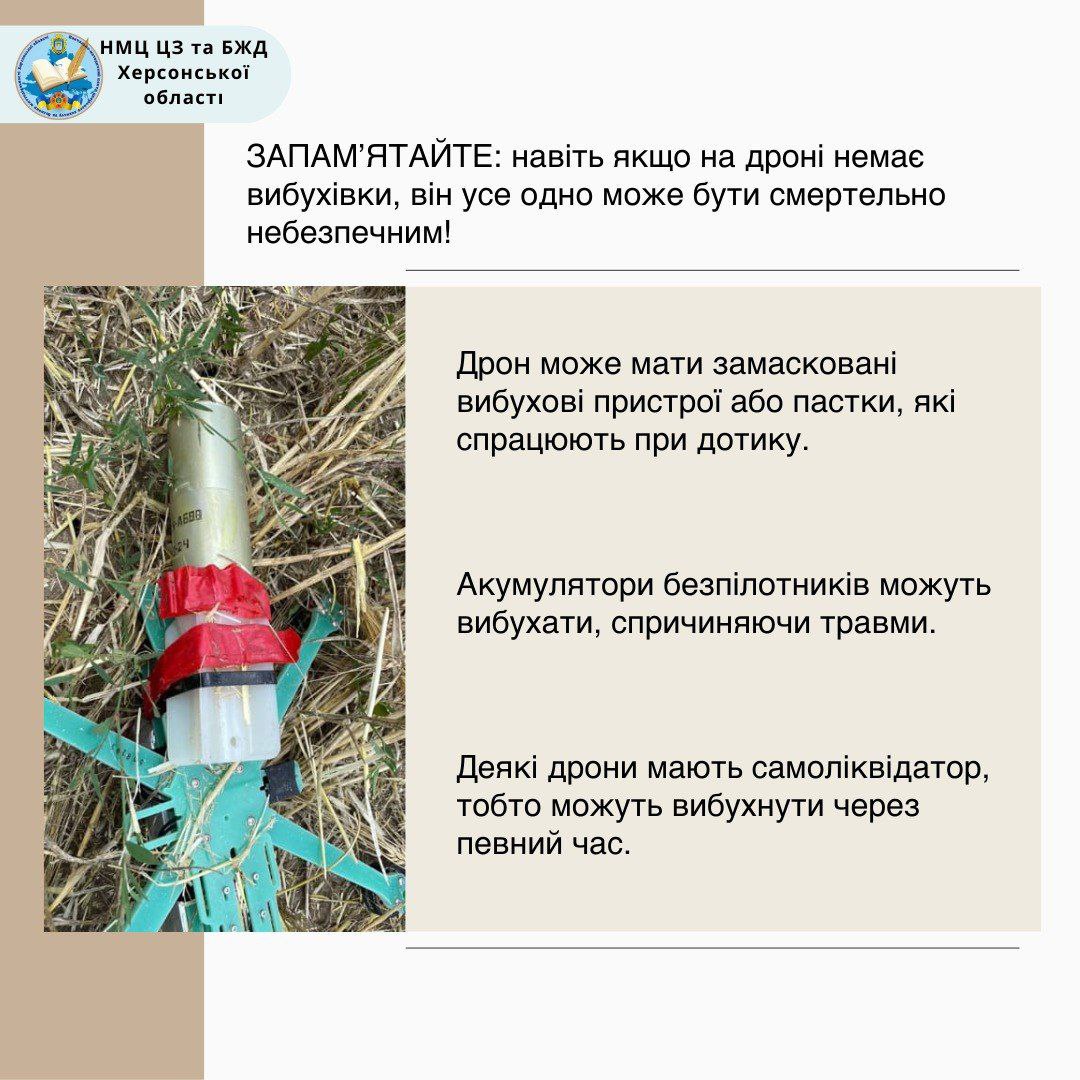 - Не варто намагатись самостійно забрати дрон, навіть з бажанням передати його нашим військовим – це може коштувати вам життя.