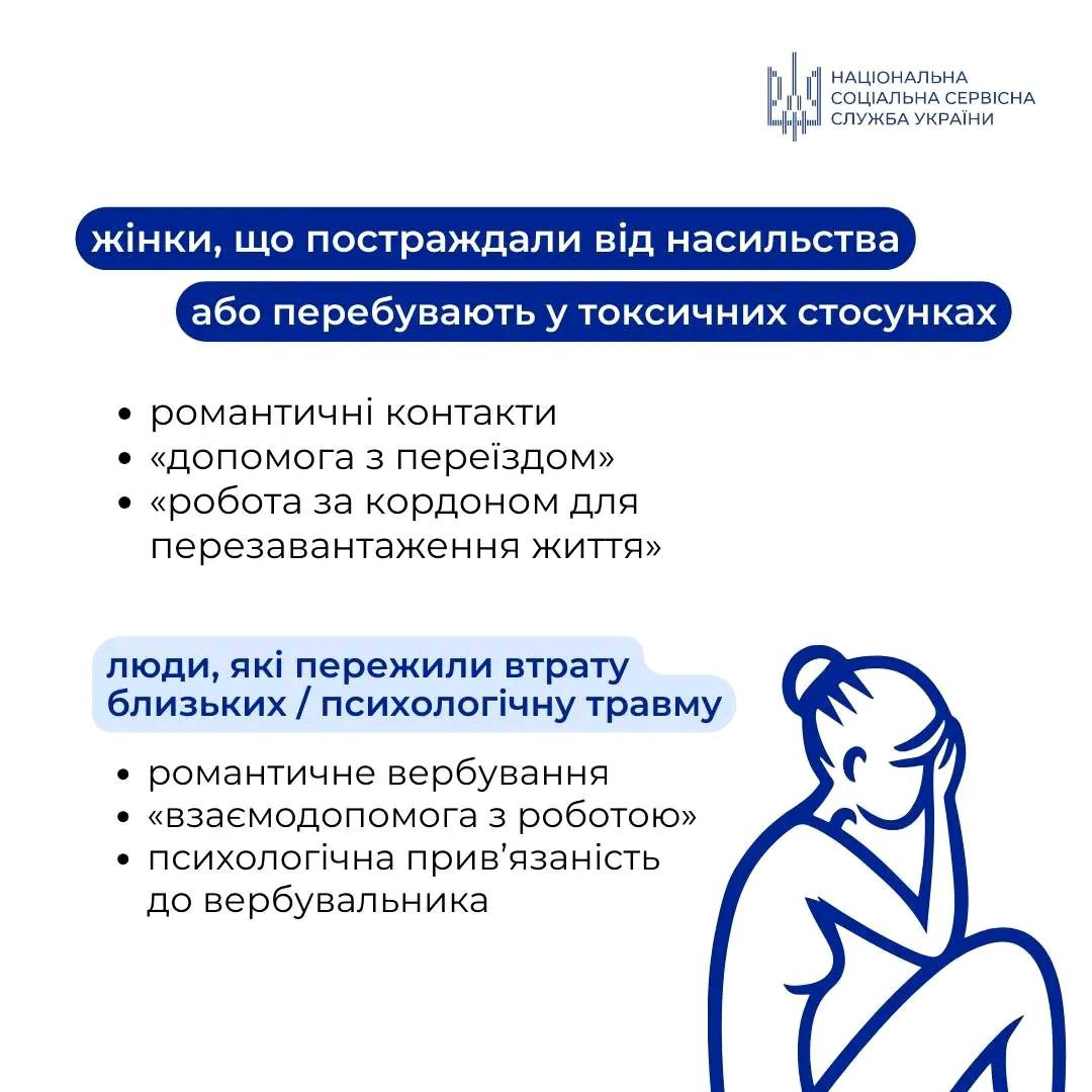 З початку 2025 року Нацсоцслужба встановила 379 статусів особам, постраждалим від торгівлі людьми, більшість із них – чоловіки. Найбільш поширеними формами експлуатації залишається трудова, сексуальна та змішана, зокрема під час використання в збройному конфлікті.