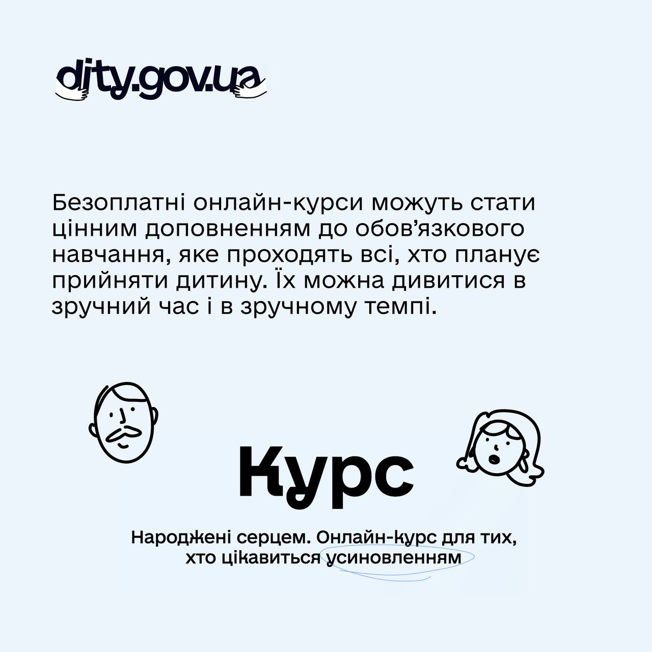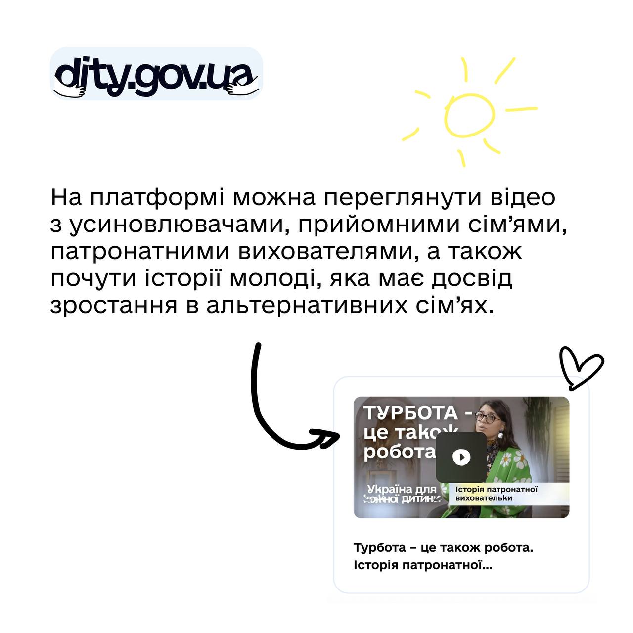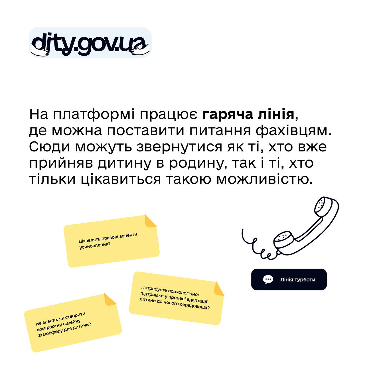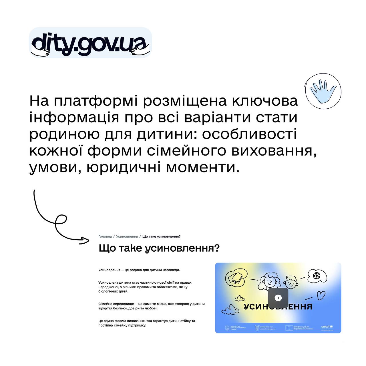 Мінсоцполітики нагадує: в Україні працює єдина державна платформа про усиновлення та сімейні форми виховання — (https://dity.gov.ua/ ).