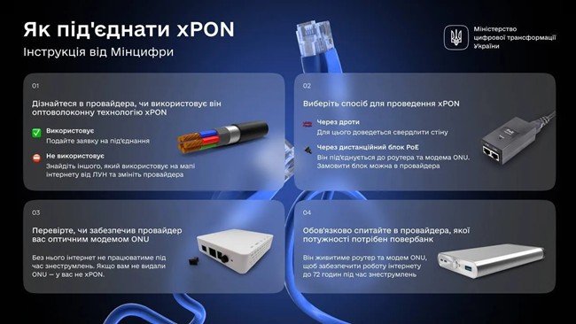 Запитайте, чи пропонує він таку послугу. Часто перехід на хPON — безоплатний. Якщо провайдер не підтримує хPON — оберіть іншого. В Україні понад 1 300 провайдерів, які працюють із цією технологією.