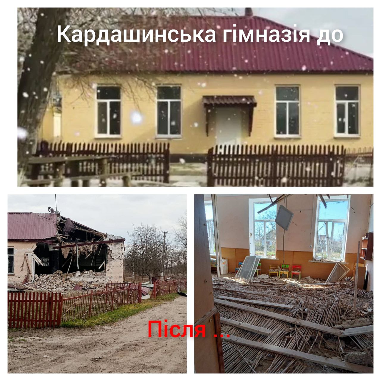 У грудні 2022 року почалися сильні обстріли села. Війська рф били куди попало, іноді прицільно, з'явилися перші поранені й загиблі... Зруйновані й пошкоджені хати, обстріляна кілька разів школа. А скоро червень 2023 року примножив лихо: Кардашинка разом із прилеглими дачними садибами повністю була затоплена через підрив окупантами Каховської ГЕС. Тижні страждань знову зробили свій відбиток у серцях його мешканців. Вони рятувалися як могли: на горищах, на кучугурах. Рев води, яка мчала у першу ніч від річки по селу у південному напрямку, ще довго буде у пам'яті тих, хто не спав усю ніч, передчуваючи ще більшу біду. Вночі під ногами бігали і плавали пацюки, жаби, вужі, які шукали прихистку, а згодом почали тріщати і валитися будинки. Не обійшлося без загиблих... Їхні тіла згодом вивезли окупанти у невідомому напрямку. Слова вдячності адресуємо молодим хлопцям-рятівникам. Їм складно було вести човна проти течії, вони натирали пекучі мозолі від весел, часто - відсутність зв'язку, але люди були врятовані! Їжа закінчувалася, ліків немає, неймовірна спека, евакуація, розстріл човнів із людьми, смерть, поранення... У одного з односельців на горищі була свиня, згодом вона потрапила до великого чавуна: люди змогли поїсти супу. За кілька тижнів перша продовольча допомога і хліб. Не можна було без сліз роздавати людям їжу...