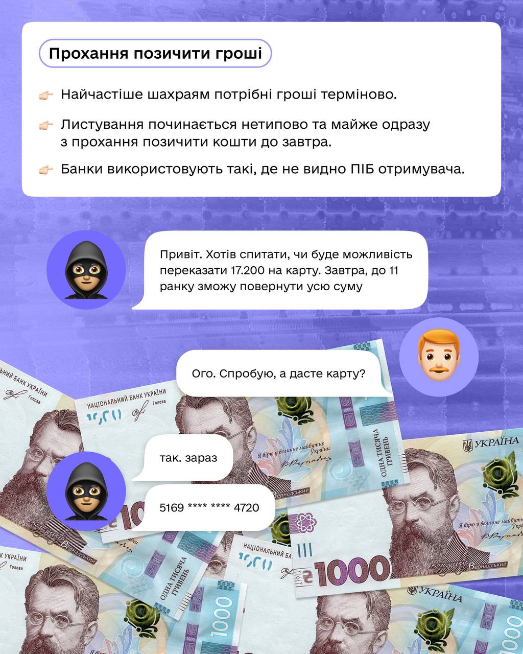 Чи писав вам несподівано знайомий із проханням позичити гроші або проголосувати за доньку друга в конкурсі? Це стандартні прийоми фішингу, які використовують злочинці після зламу акаунту. Детальніше про них — у каруселі.