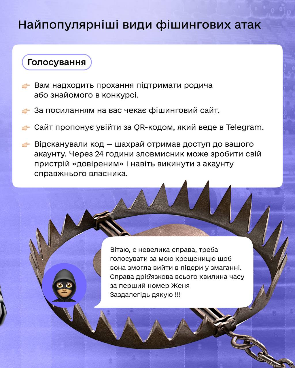 За час повномасштабної війни Telegram одночасно став джерелом оперативних новин та найбільшим розплідником шахрайства. Понад 70% українців звертаються на гарячу лінію цифрової безпеки Nadiyno.org із запитами щодо зламу Telegram-акаунтів.
