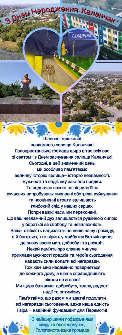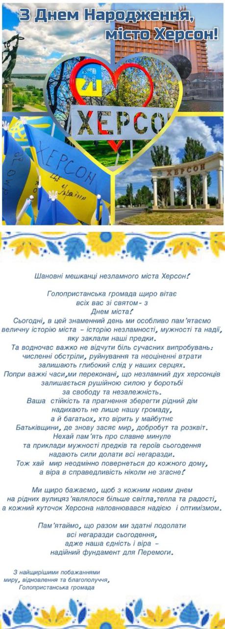 Сьогодні відзначають річниці одразу шість населених пунктів Херсонщини: Херсон – 247 років, Берислав – 241, Каховка – 234, Генічеськ – 241, Каланчак – 231, Горностаївка Каховського району – 238.