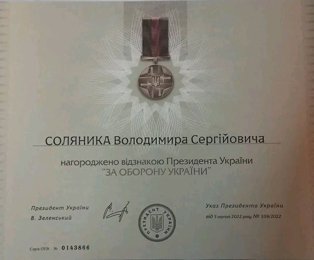 Згідно з Указом Президента України, нашому земляку присвоєно почесну відзнаку "За оборону України"! Володимир, як справжній патріот, став на захист рідної землі, своєї громади та всієї України.