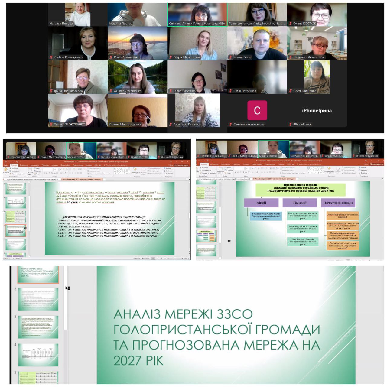 Одним із найважливіших питань наради став розгляд «Плану трансформації освітньої мережі на 2025-2027 роки», що передбачає впровадження профільного навчання. План трансформації враховує реалії сьогодення та прогнозований контингент учнів та розрахований на той час, коли рідна земля знову буде вільною, і кожна дитина зможе отримати якісну освіту у своїй громаді. Цю тему розкрила Протас Марина Валеріївна, в.о. начальника відділу освіти виконавчого комітету Голопристанської міської ради.