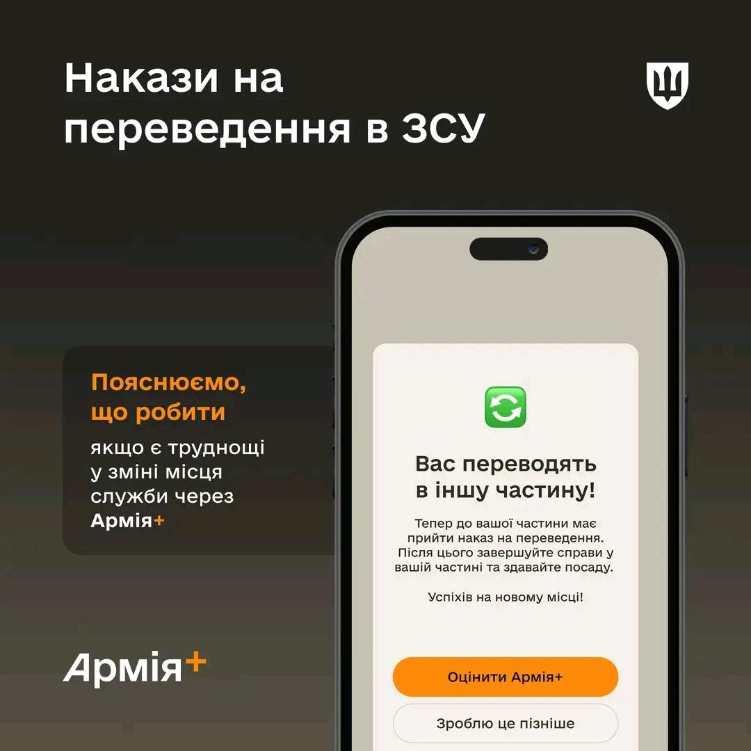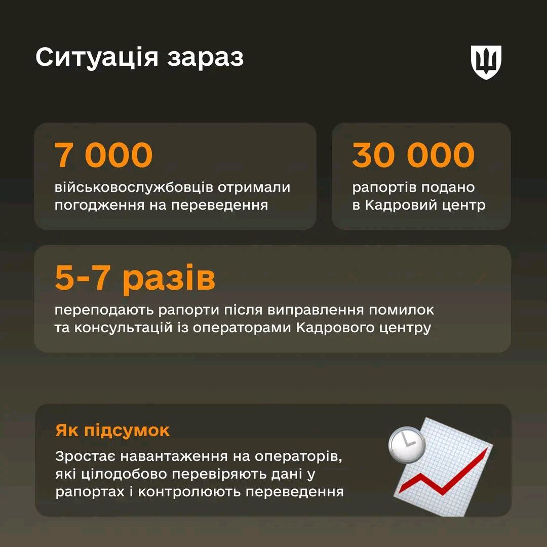За два місяці роботи функції зміни місця служби в Армія+ вже 7 000 військовослужбовців отримали погодження на переведення до обраних частин. Водночас деякі військові очікують на накази довше через значне навантаження – щодня надходить до 1 000 рапортів, загалом вже подано 30 000.