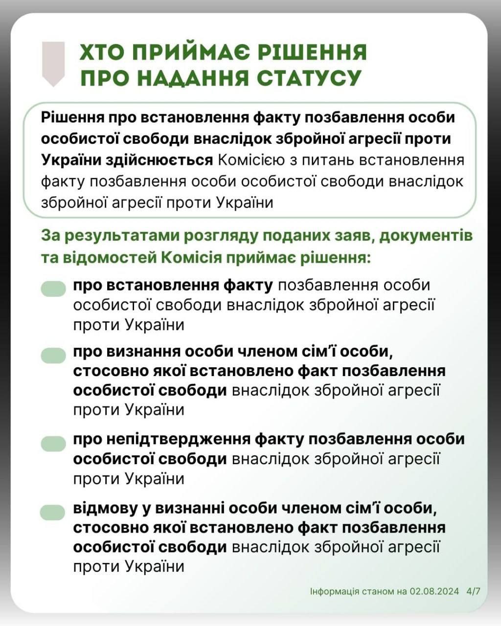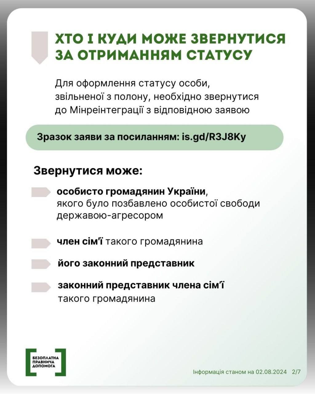 Особи, яких було позбавлено особистої свободи внаслідок збройної агресії проти України та члени їх сімей, мають право на спеціальних статус.