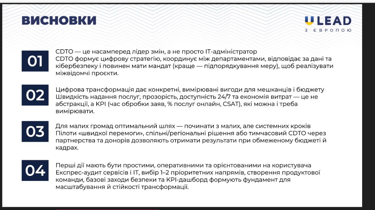 - ключові напрями діяльності CDTO (цифрові послуги, дані, кібербезпека, цифрова грамотність);