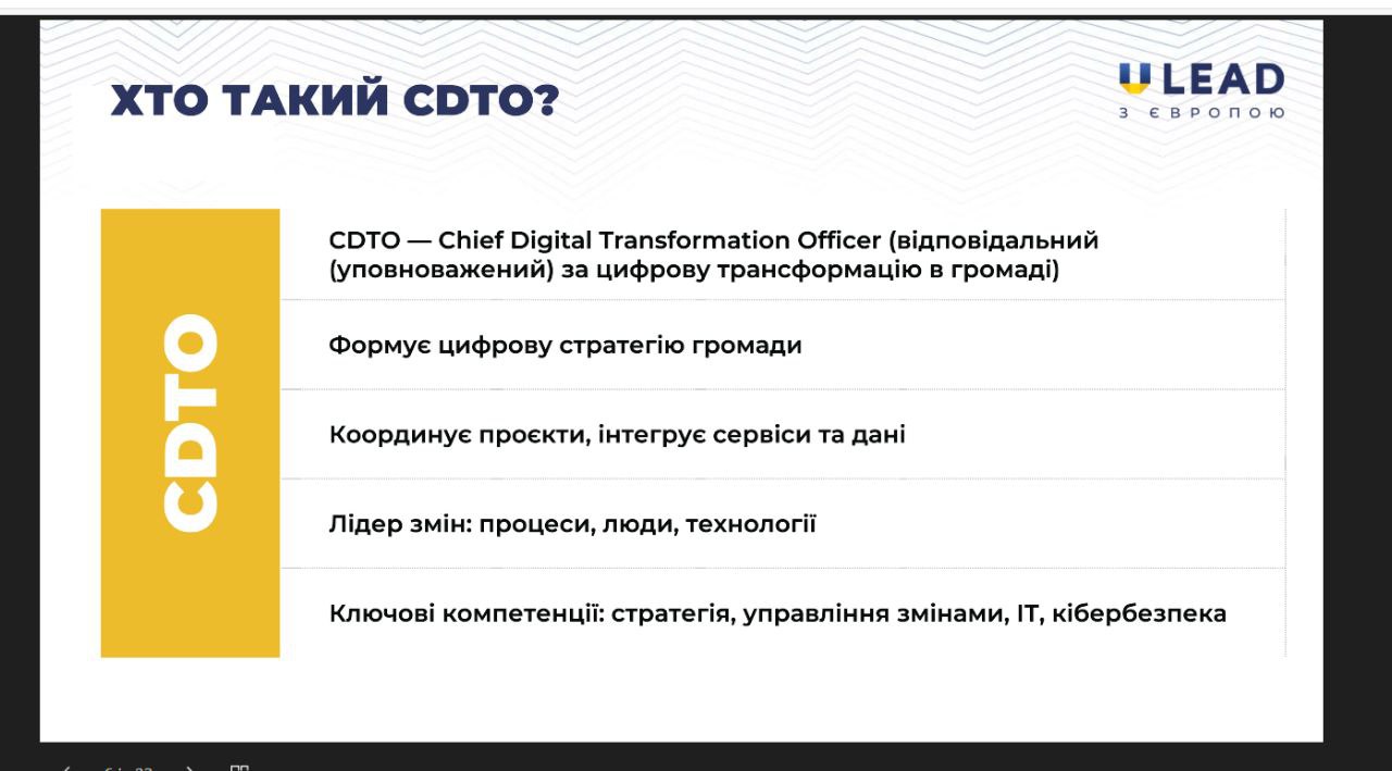 - базові знання щодо сутності та ролі CDTO у структурі громади;