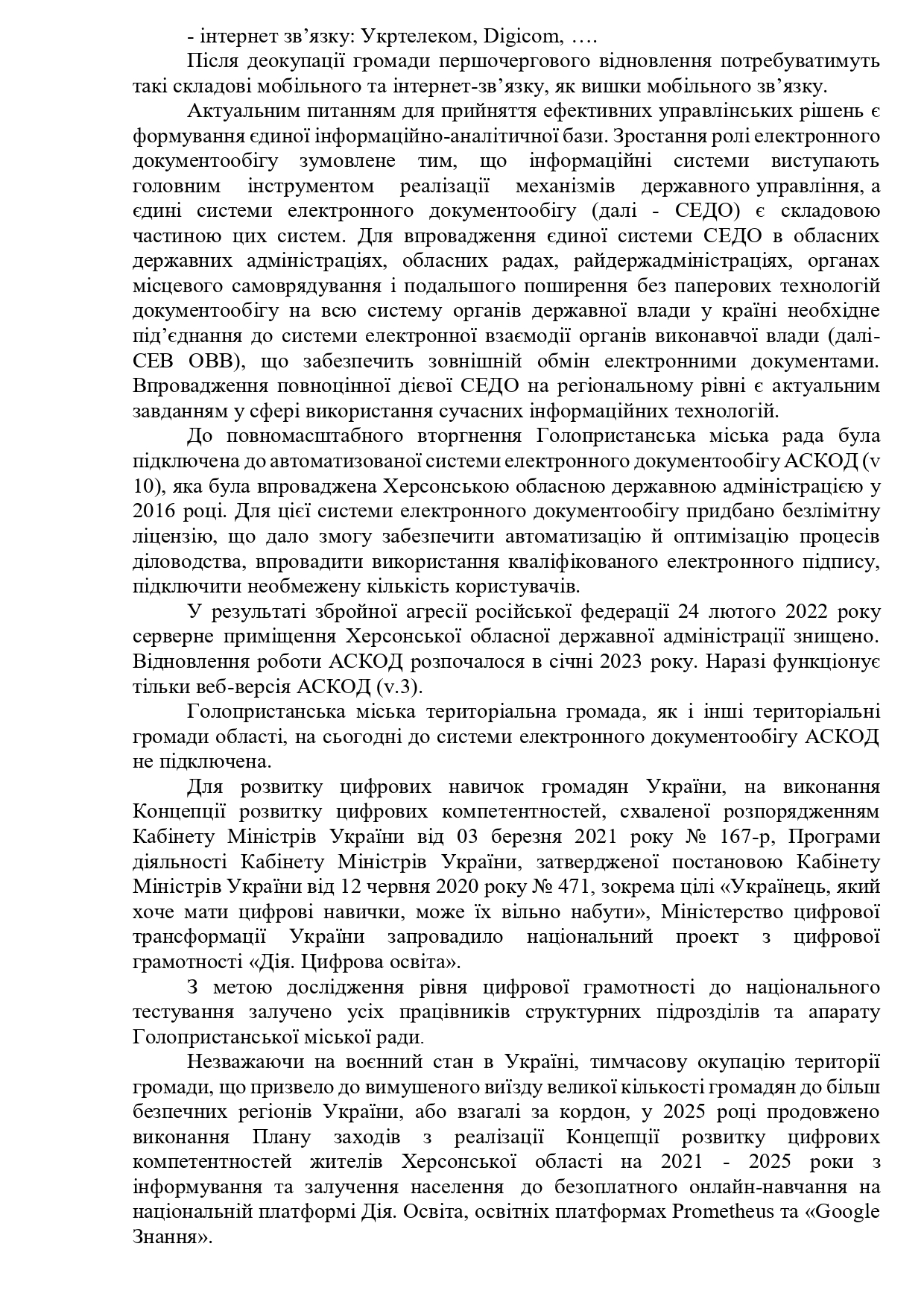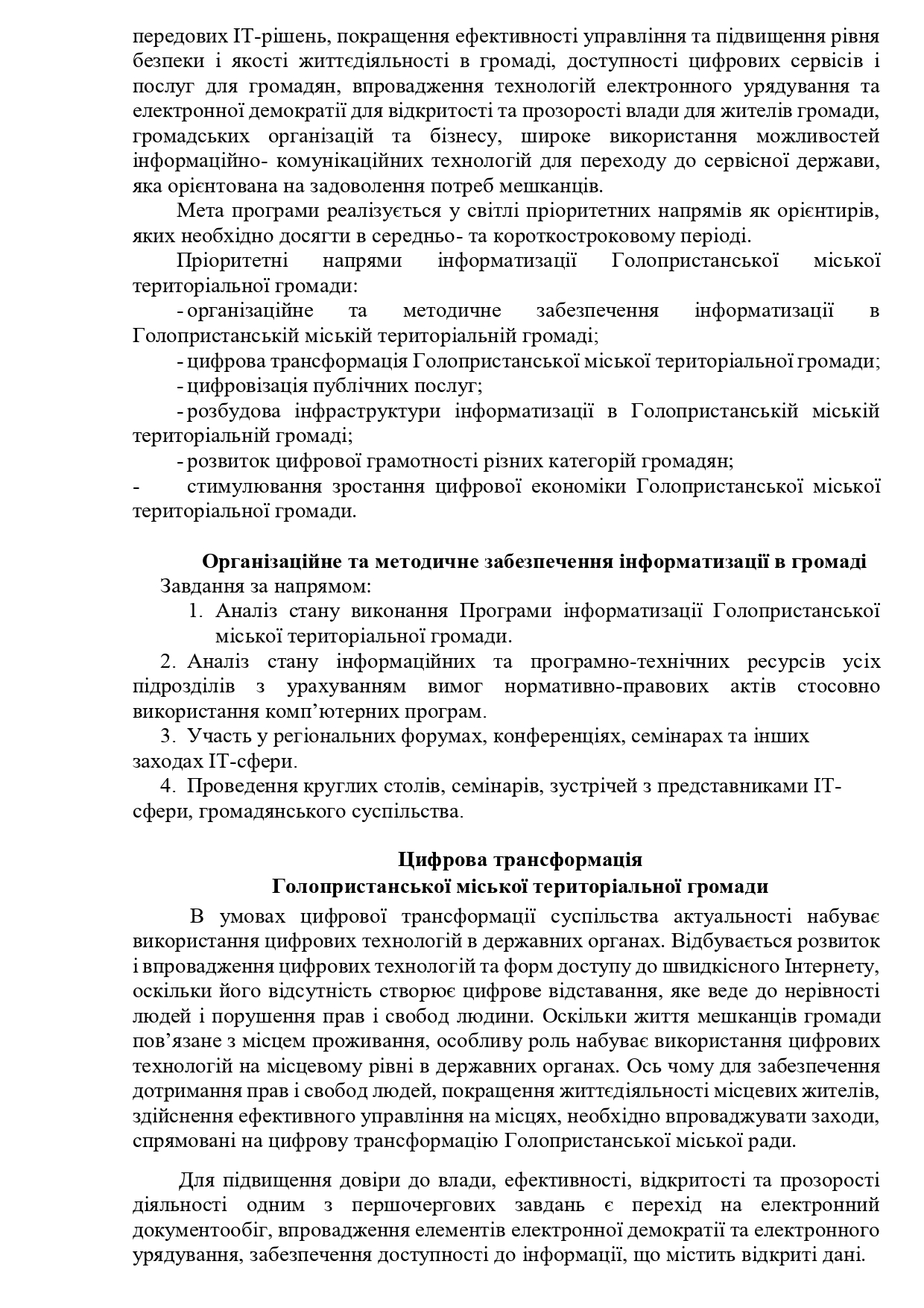 Повідомлення про початок роботи над проектом програми інформатизації Голопристанської міської територіальної громади на 2025-2026 роки