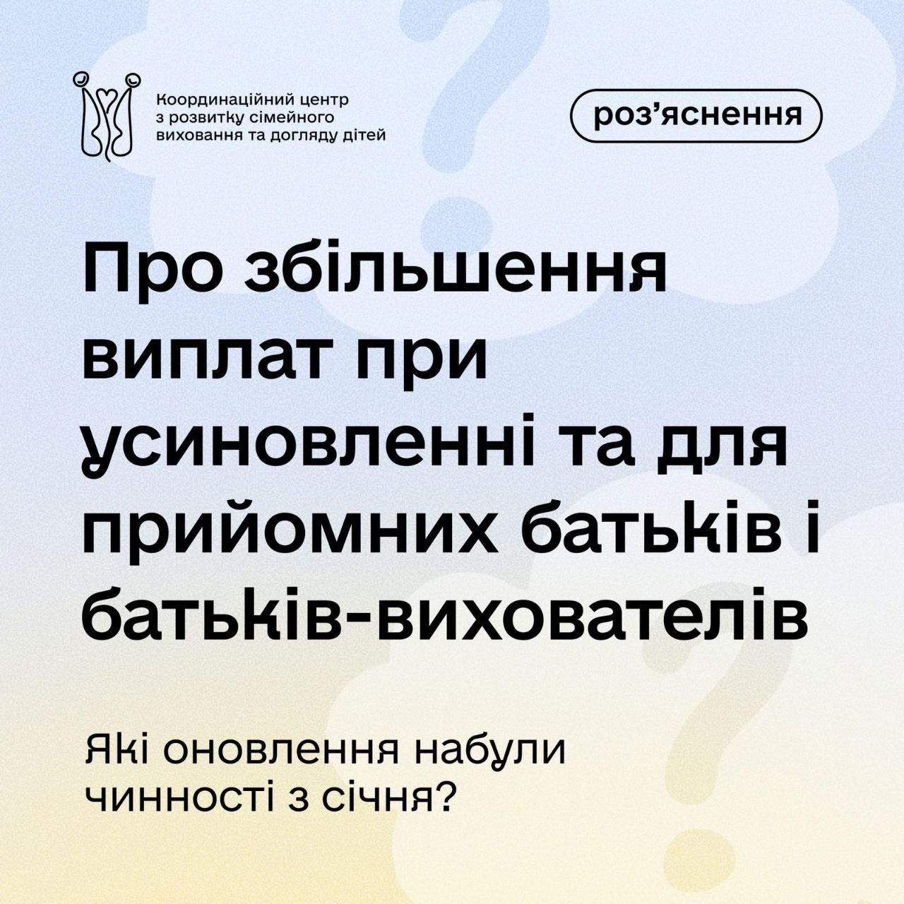 Крім того, збільшено розміри виплат при усиновленні дитини, що є важливим кроком держави на підтримку сімейних форм виховання та турботи про дітей.