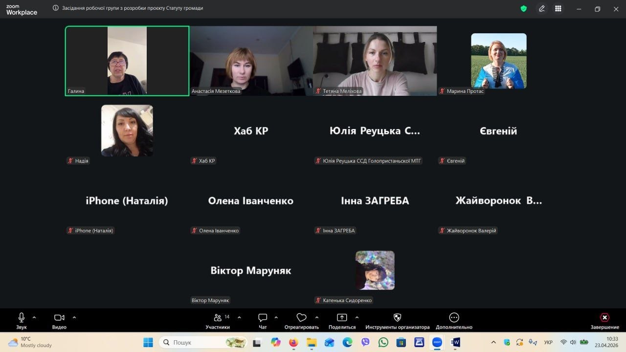 Сьогодні у онлайн-форматі відбулося чергове засідання робочої групи з розроблення проєкту Статуту Голопристанської міської територіальної громади на чолі з заступником міського голови Галиною Богдановою.