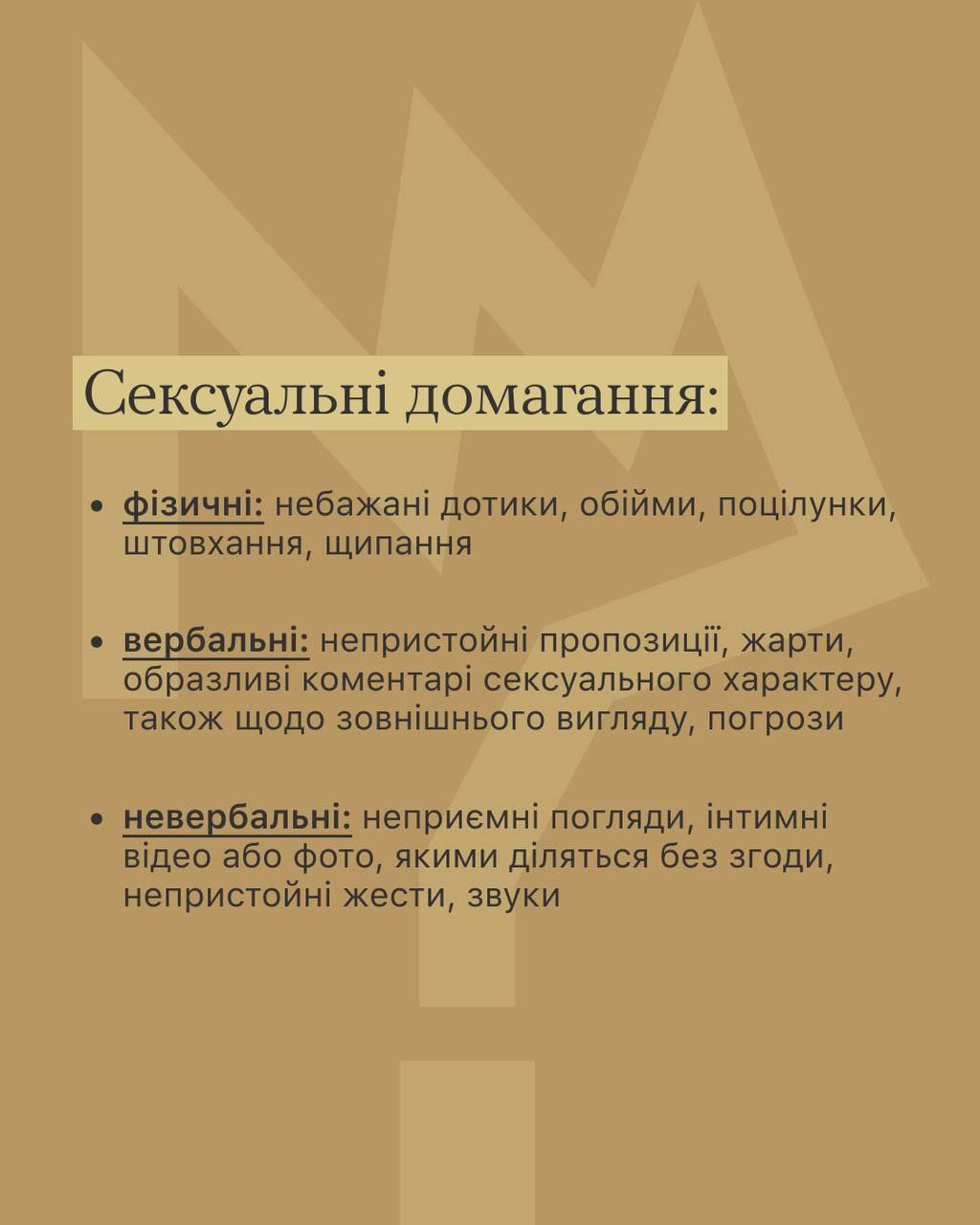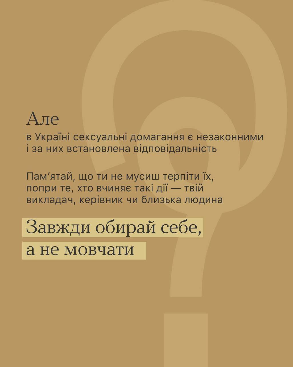Бо сексуальні домагання — це не про флірт і компліменти. Це коли «просто жарт» може залишити слід на все життя. А ще це страх відмовити, бо можуть «вигнати» з універу, звільнити, зіпсувати репутацію, зганьбити.