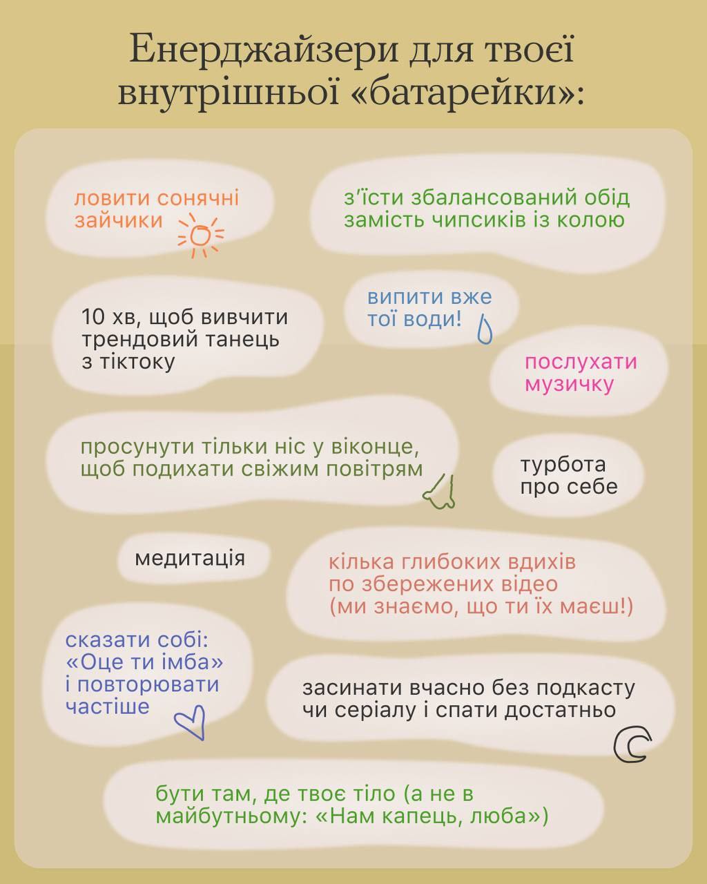 Саме тому важливо пильнувати рівень енергії своєї «батарейки». Ну і щоби почуватися краще — постійно підзаряджати її.