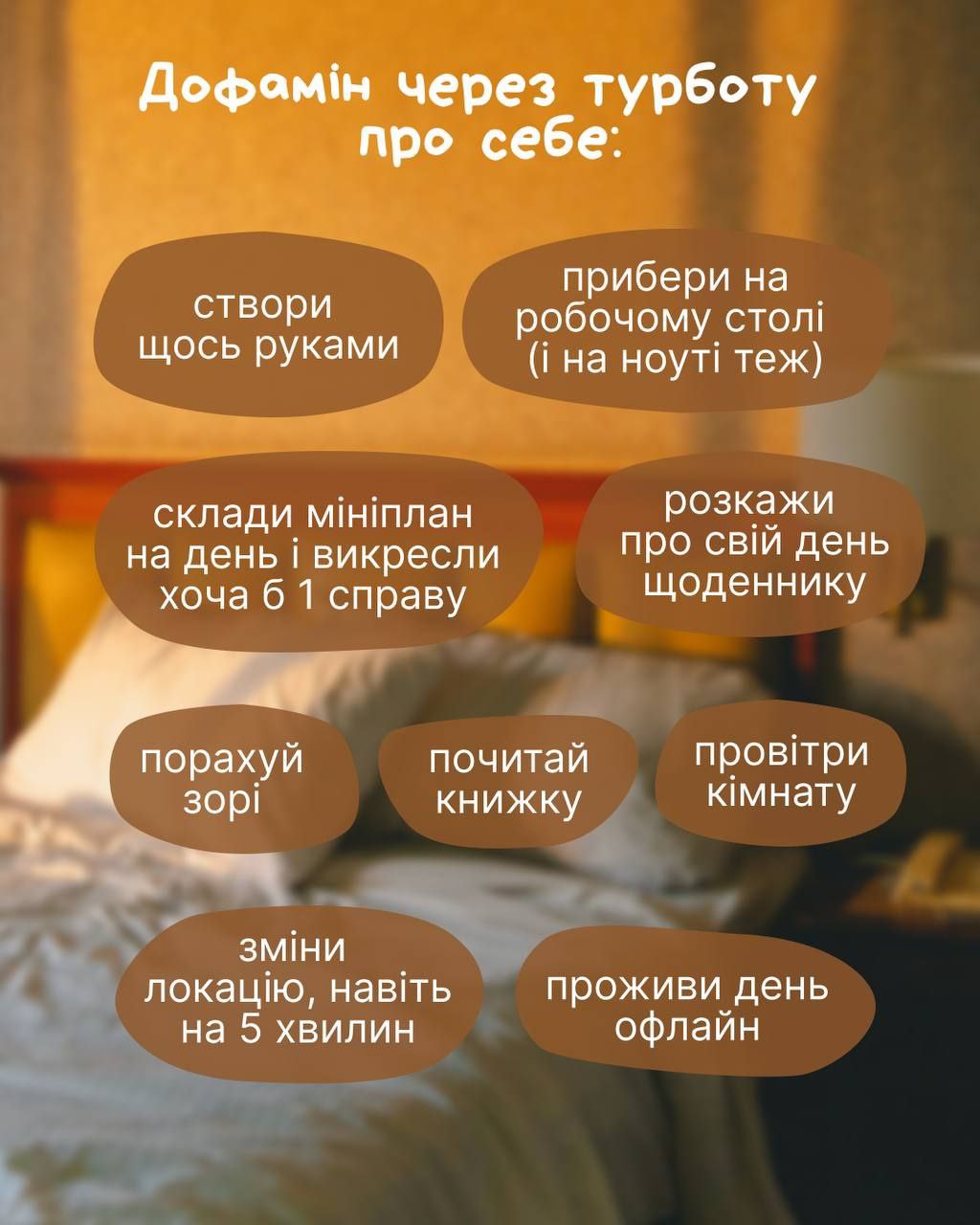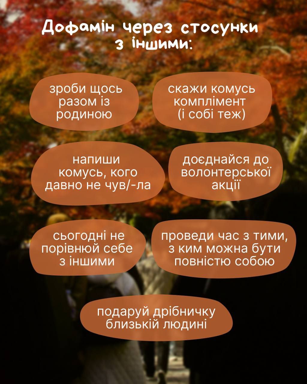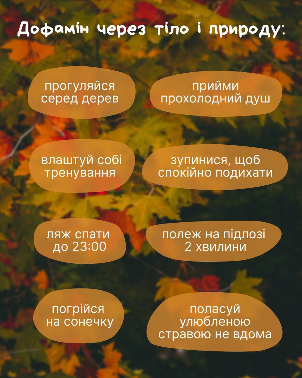 Осінь стає приємнішою, коли додаєш у неї прості дії, що активують дофамін — гормон, який робить нас радісними і вмотивованими.