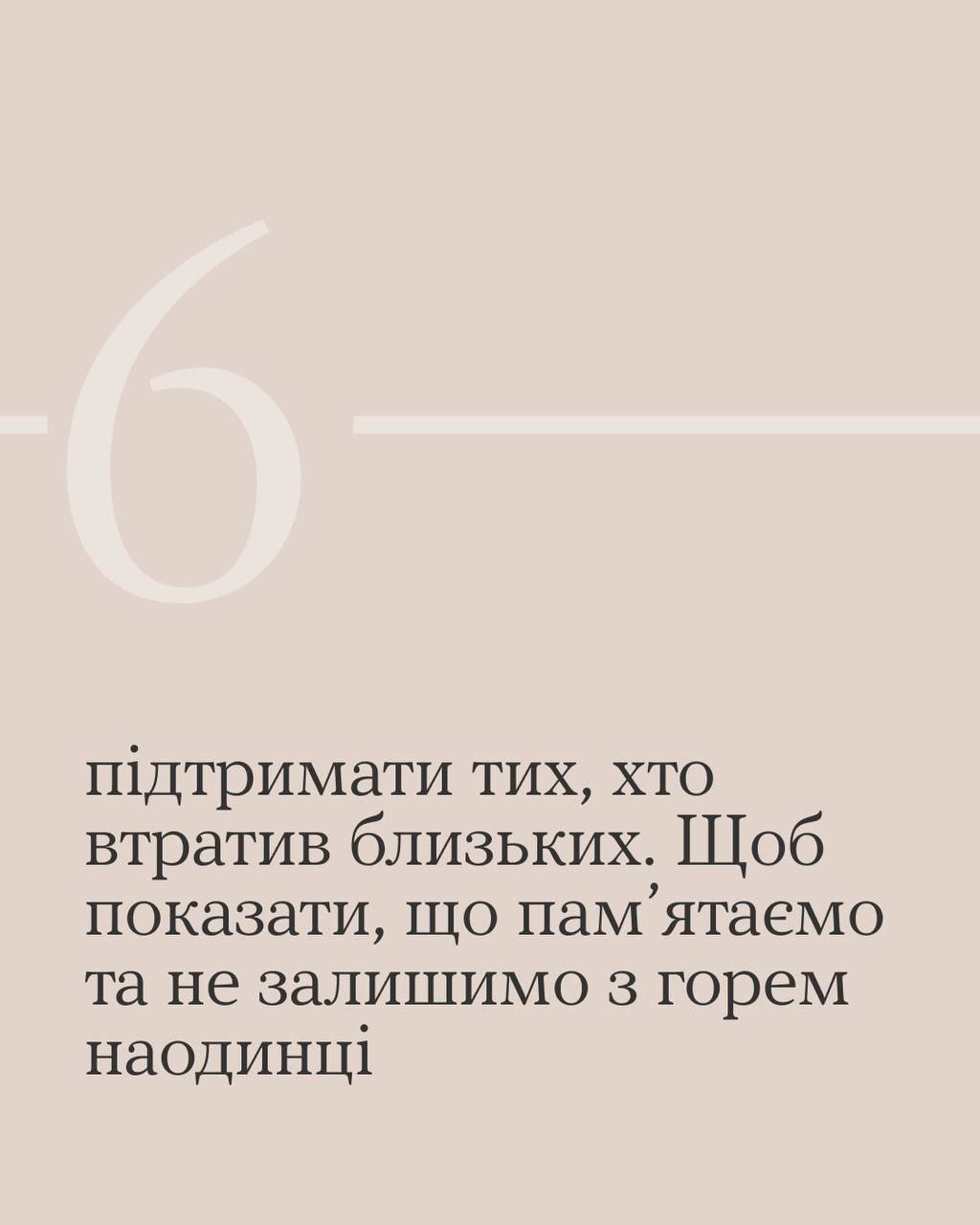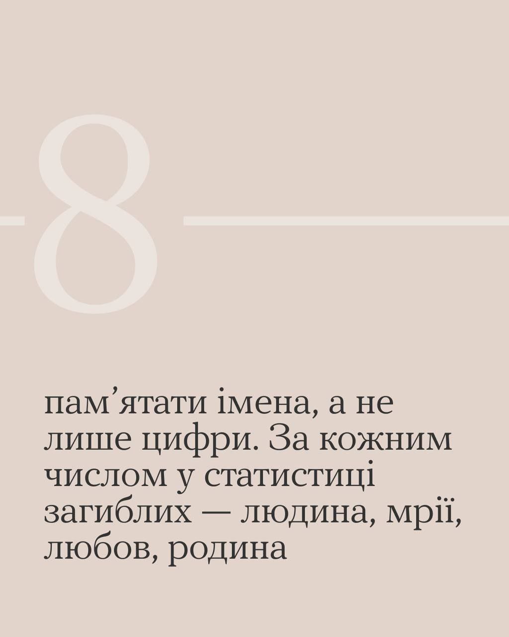 А ти зробиш одну маленьку та дуже цінну дію. Шануй себе і шануй тих, хто загинув.