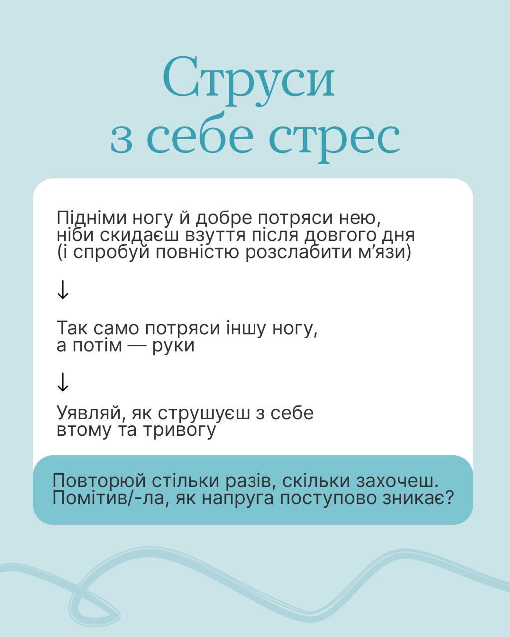 Стрес проявляє себе по-різному: тривожними думками, втомою чи фізичним дискомфортом — коли паморочиться в голові, бракує повітря, стискає щелепу чи плечі підіймаються до вух.