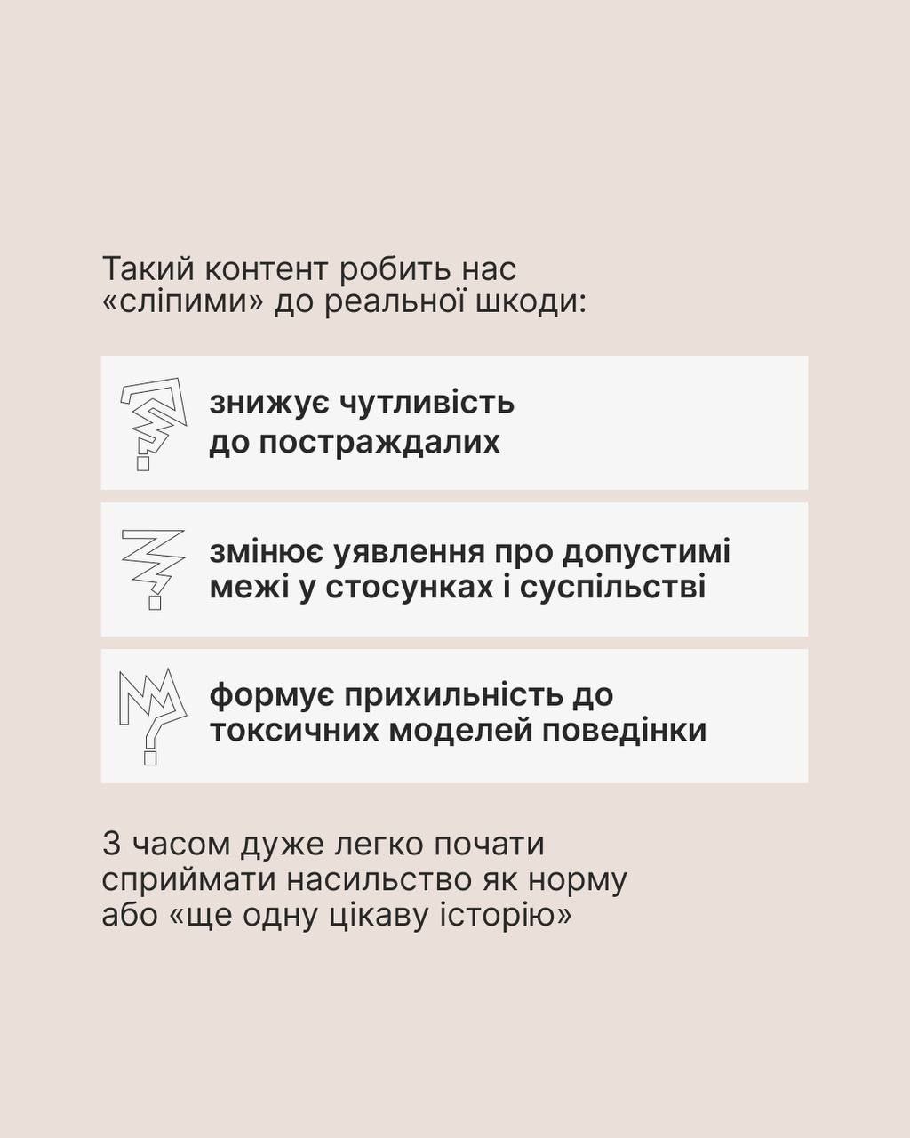 Але ти точно можеш не використовувати чужий біль як тему для контенту. Бо привертати увагу до проблеми і говорити про неї серйозно й чесно — це одне. А зовсім інше — робити собі актив у профілі на такому «ситуативі».