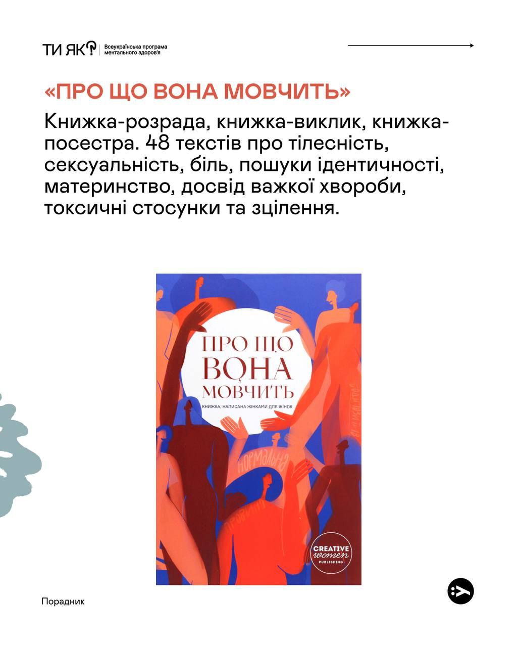 «Ти як?» спільно з @yakabookua зібрали добірку книжок, написаних жінками для жінок. Це історії-опори, які стануть підтримкою та компанією, що розділить з тобою і сум, і радість, навіть у найважчі часи.