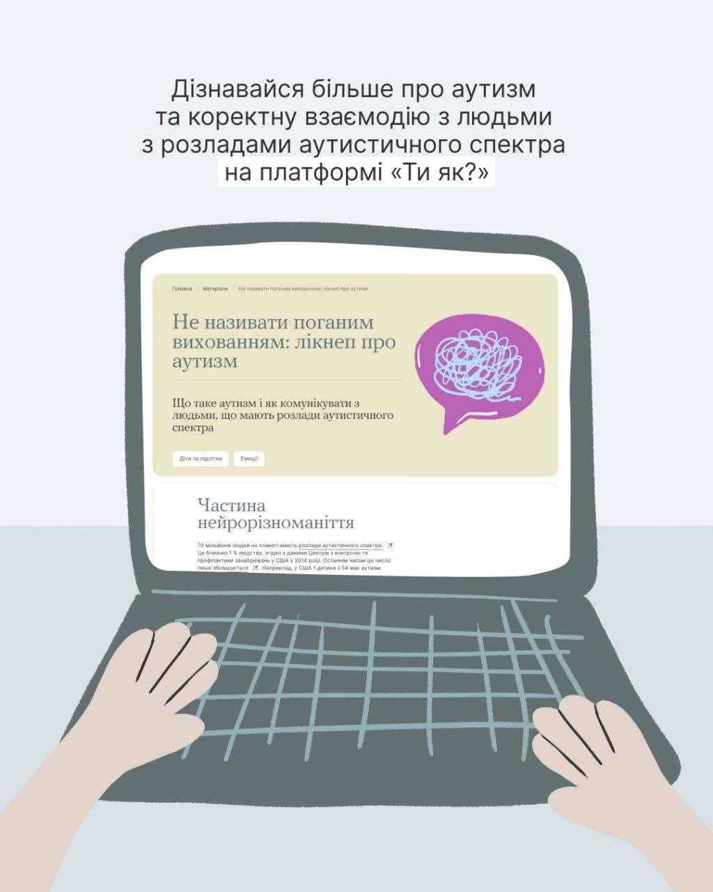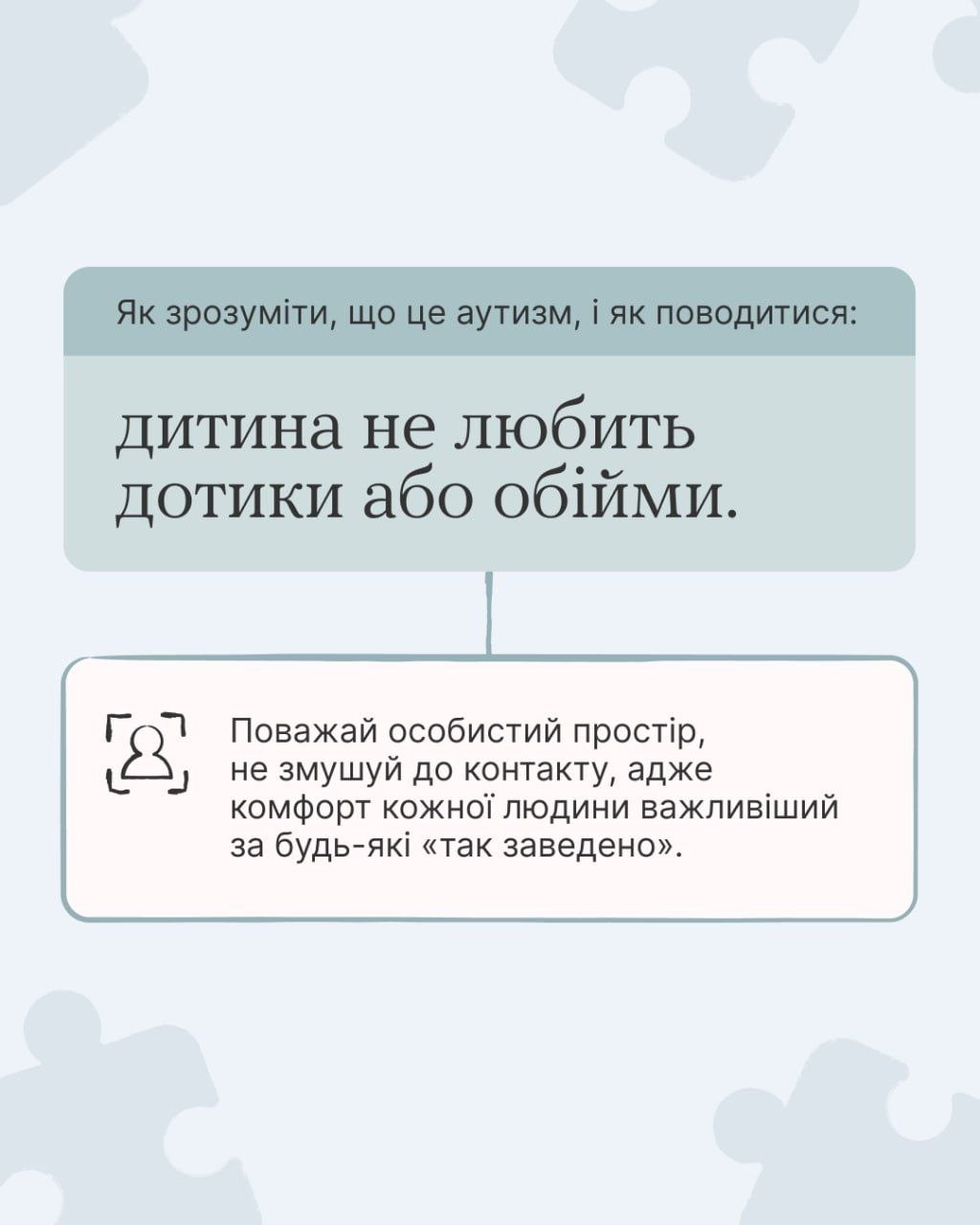 Люди з аутизмом сприймають світ трохи інакше, і це нормально. Як нормально слухати, проявляти терпіння й поважати їхні особисті кордони.