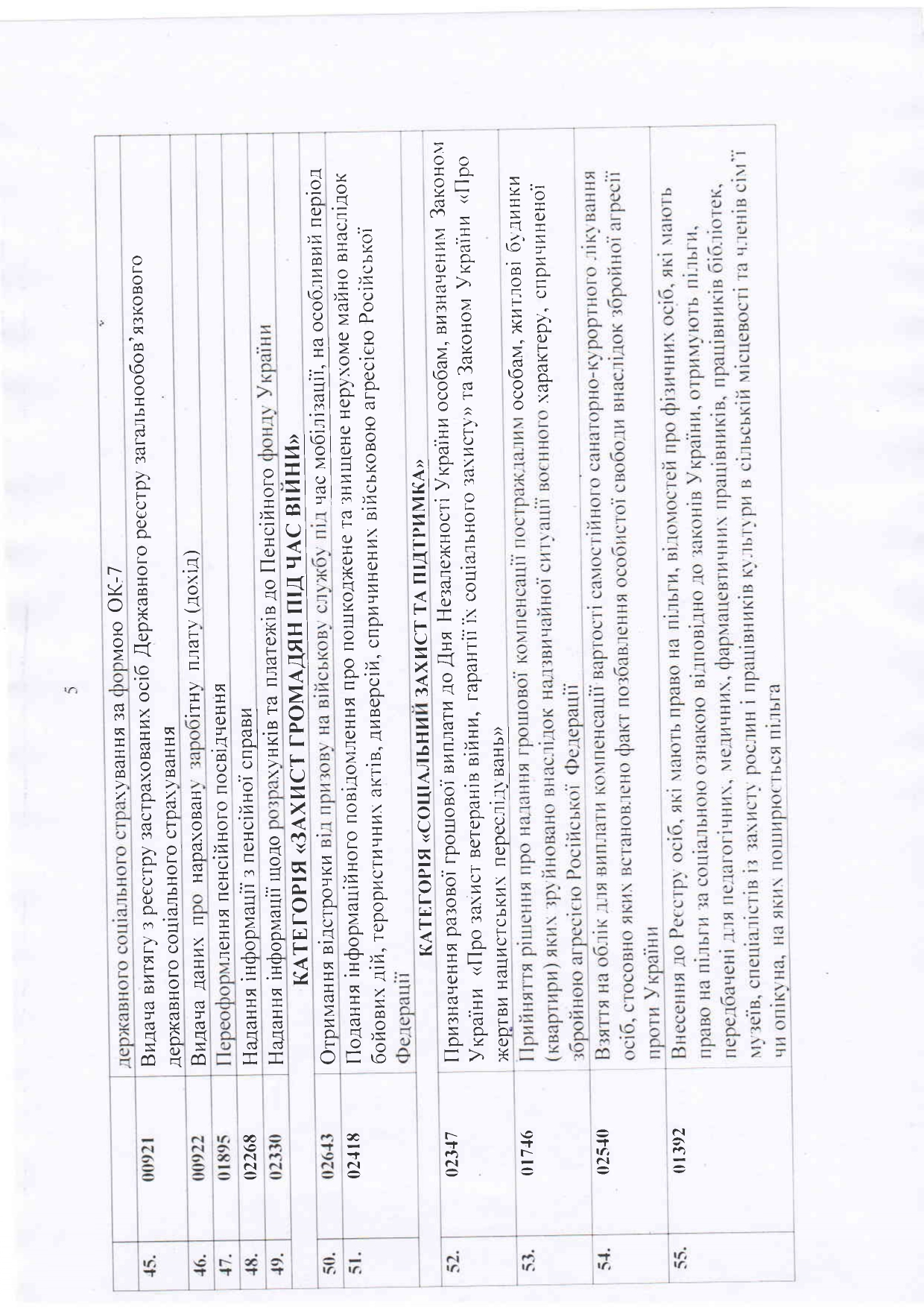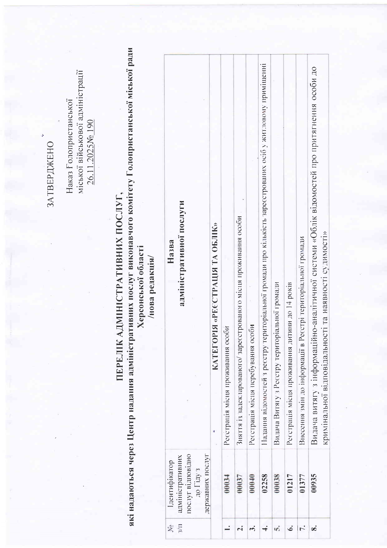 Перелік адміністративних послуг, які надаються через центр надання адміністративних послуг