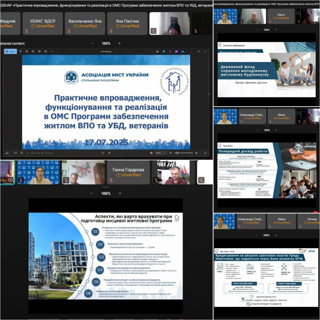 Під час вебінару учасники ознайомилися з ключовими положеннями чинного законодавства щодо реалізації державних житлових програм на місцях, зокрема тих, що стосуються внутрішньо переміщених осіб, ветеранів та учасників бойових дій.