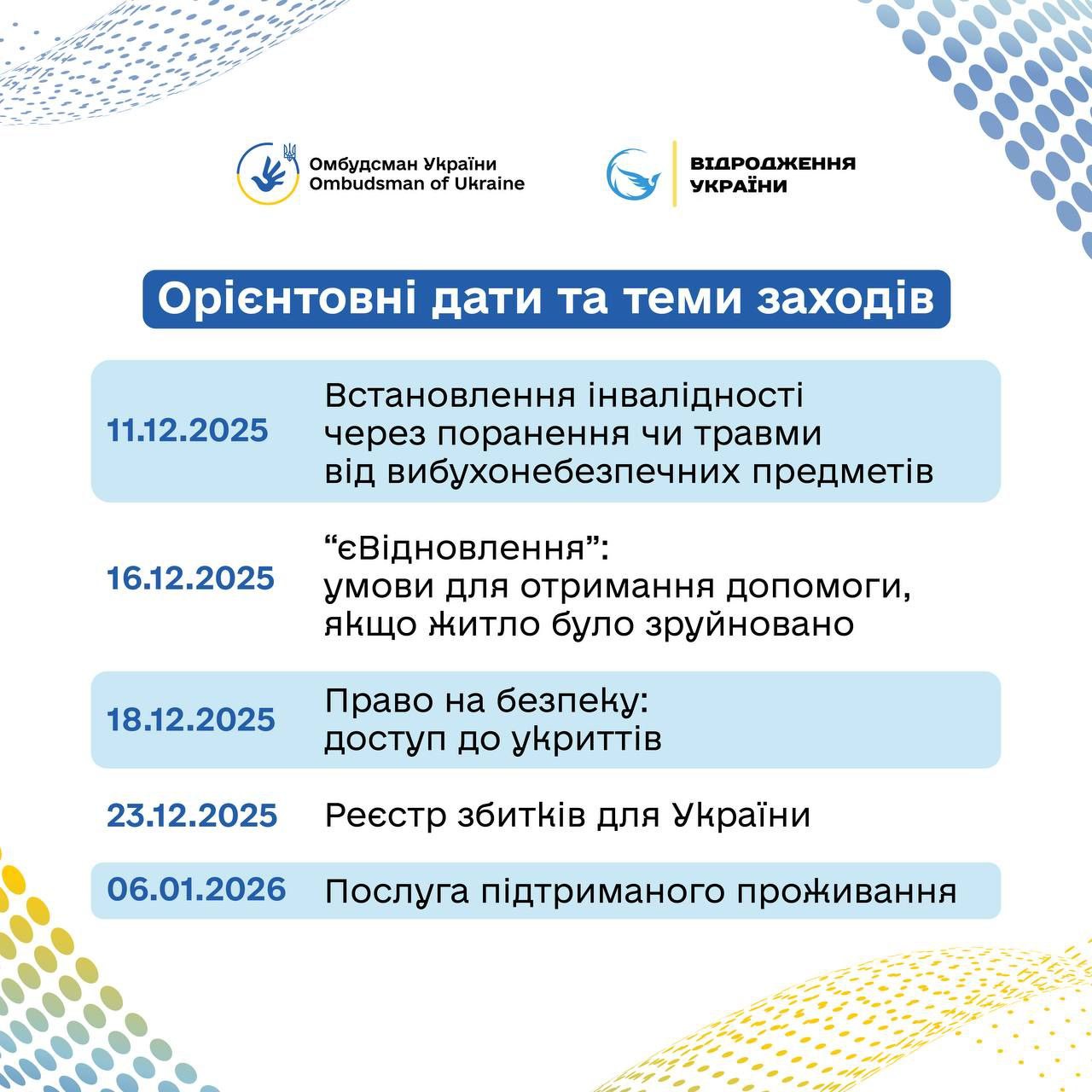 Ініціатива реалізована ГО «Відродження України 2022» спільно з Офісом Омбудсмана за підтримки проєкту Ради Європи «Удосконалення судових та позасудових засобів захисту прав осіб, постраждалих від війни в Україні».