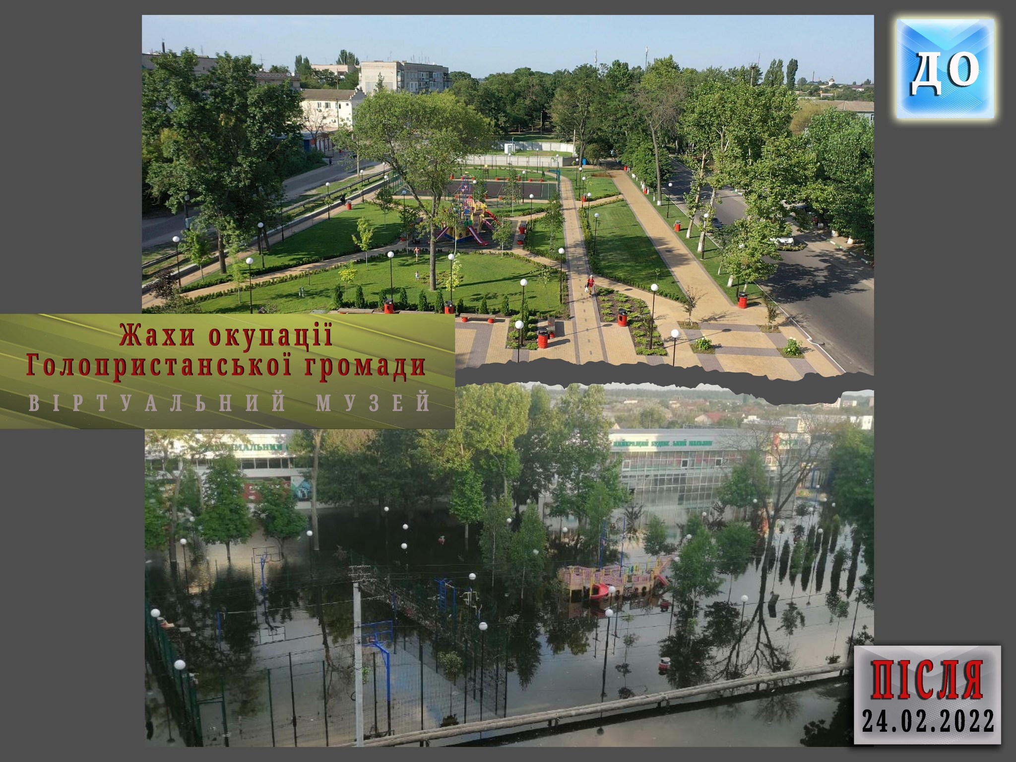 Жахи окупації Голопристанської громади зібрані у фотоальбомі на офіційній сторінці Facebook Голопристанської міської військової адміністрації – це перші кроки у створенні віртуального музею війни та окупації, аби привернути увагу до масштабності значних руйнацій, горя тих страшних реалій, які відбуваються через окупацію російськими загарбниками міста Гола Пристань та сел старостатів громади.