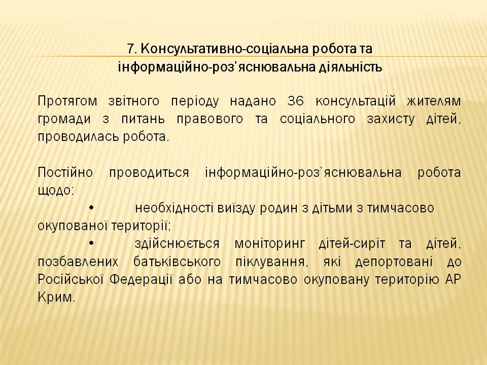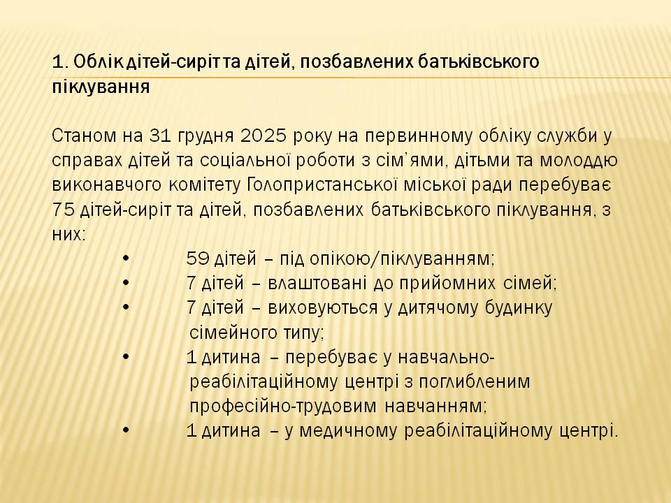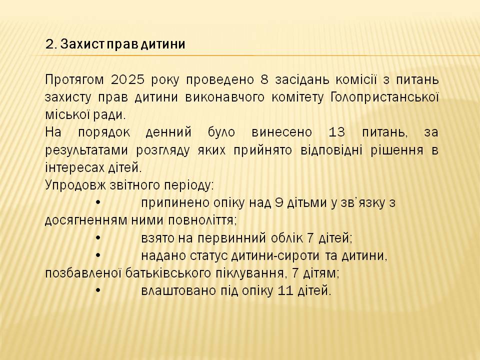Звіт про роботу служби у справах дітей та соціальної роботи з сім’ями, дітьми та молоддю виконавчого комітету Голопристанської міської ради за 2025 рік
