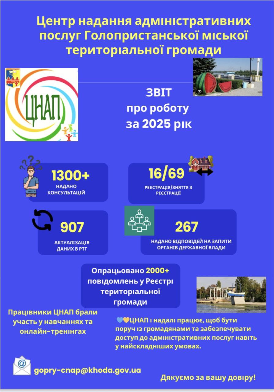 Звіт центру надання адміністративних послуг Голопристанської міської територіальної громади