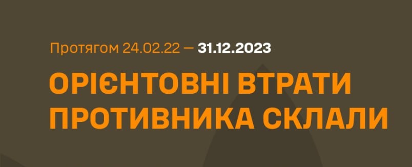 Загальні бойові втрати противника з 24.02.22 по 31.12.23 (орієнтовно)