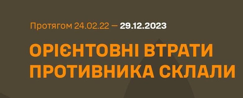 Загальні бойові втрати противника з 24.02.22 по 29.12.23 (орієнтовно)