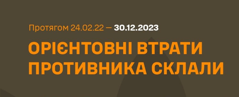 Загальні бойові втрати противника з 24.02.22 по 30.12.23 (орієнтовно)