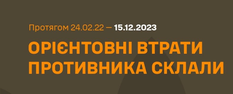 Загальні бойові втрати противника з 24.02.22 по 15.12.23 (орієнтовно)