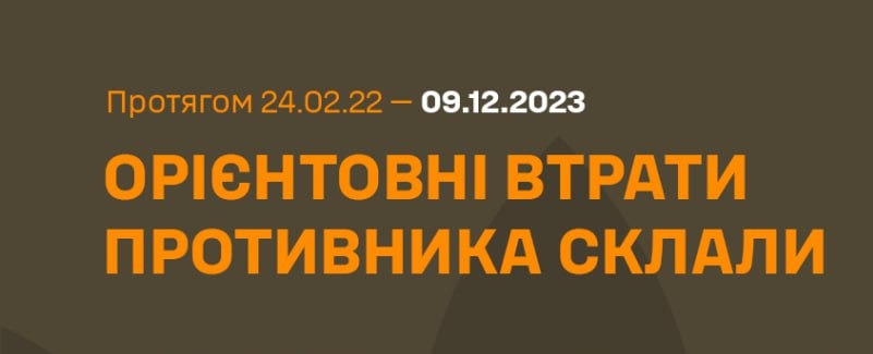 Загальні бойові втрати противника з 24.02.22 по 09.12.23 (орієнтовно)