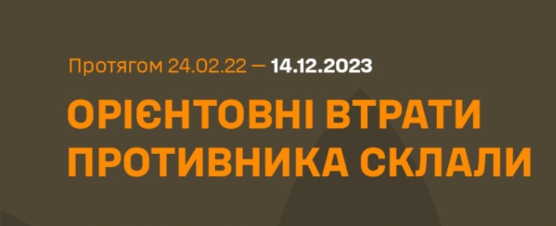 Загальні бойові втрати противника з 24.02.22 по 14.12.23 (орієнтовно)
