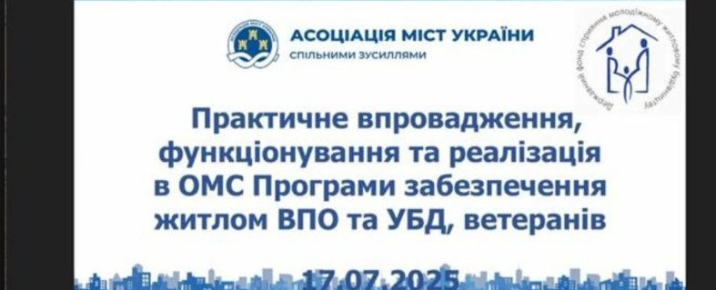 Вебінар на тему: «Практичне впровадження, функціонування та реалізація в органах місцевого самоврядування Програми забезпечення житлом внутрішньо переміщених осіб та учасників бойових дій, ветеранів»