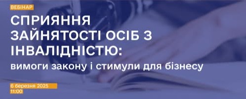 6 березня 2025 року Фонд соціального захисту осіб з інвалідністю проведе вебінар на тему «Сприяння зайнятості осіб з інвалідністю: вимоги закону і стимули для бізнесу».