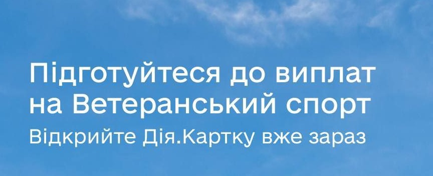 Спорт для ветеранів — це про енергію, силу та внутрішній спокій. Відкривайте Дія.Картку зараз і з 1 жовтня отримуйте 1 500 гривень за програмою Ветеранський спорт — на тренажерний зал, басейн чи спортивні секції.