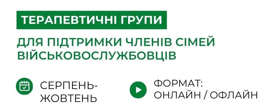 Запрошуємо родини військовослужбовців долучитися до терапевтичних груп підтримки